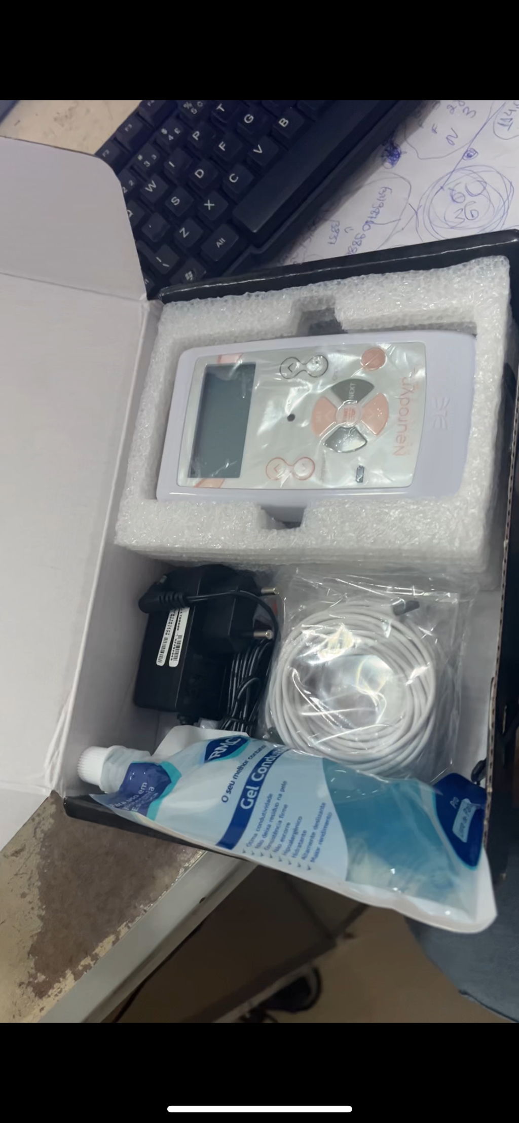 Neurodyn Portátil System - Aparelho de Correntes Aussie, Russa, Interferencial Bipolar, TENS e FES: O Neurodyn Portátil System é um compacto e portátil aparelho de eletroterapia que oferece diferentes tipos de corrente elétrica para tratamentos terapêuticos, de reabilitação e estéticos. Possui 2 canais com controle independentes e inclui correntes russa, aussie, interferencial bipolar, TENS e FES.| Entrada: | Bateria recarregável: Li-Ion (Lítio-ion) 3.7V 2600mA |